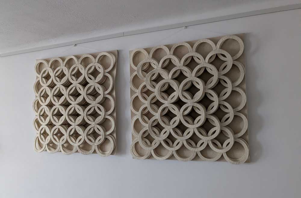 Wandobjekte Arazzo Ivories dancing Regeneration Hommage an die weiße Ziege Soweit das Auge reicht Twins Twins 2026 65 cm x 65 cm Stanzformen Schafwolle Twin 1 Struktur Twin 2 Struktur Bilder Für eine größere Ansicht klicken Sie bitte auf das jeweilige Bild!